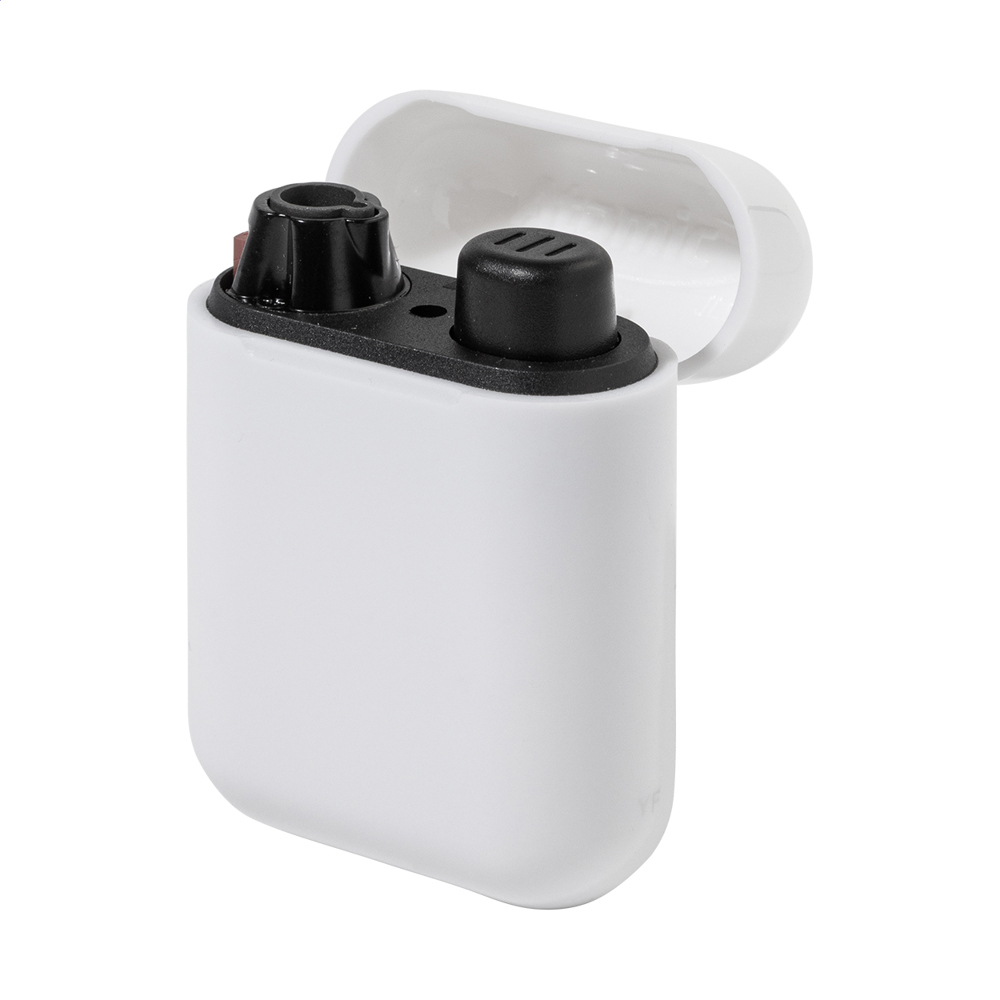 Nachfüllbares Piezo-Jet-Feuerzeug aus Kunststoff in einem trendigen Gehäuse, inspiriert vom Design moderner kabelloser Kopfhörer. MIt Kindersicherung. Wird mit etwa 80 % Gasfüllung geliefert. Nur in vollen Exportkartonmengen erhältlich (Vielfaches von 500 Stück)!